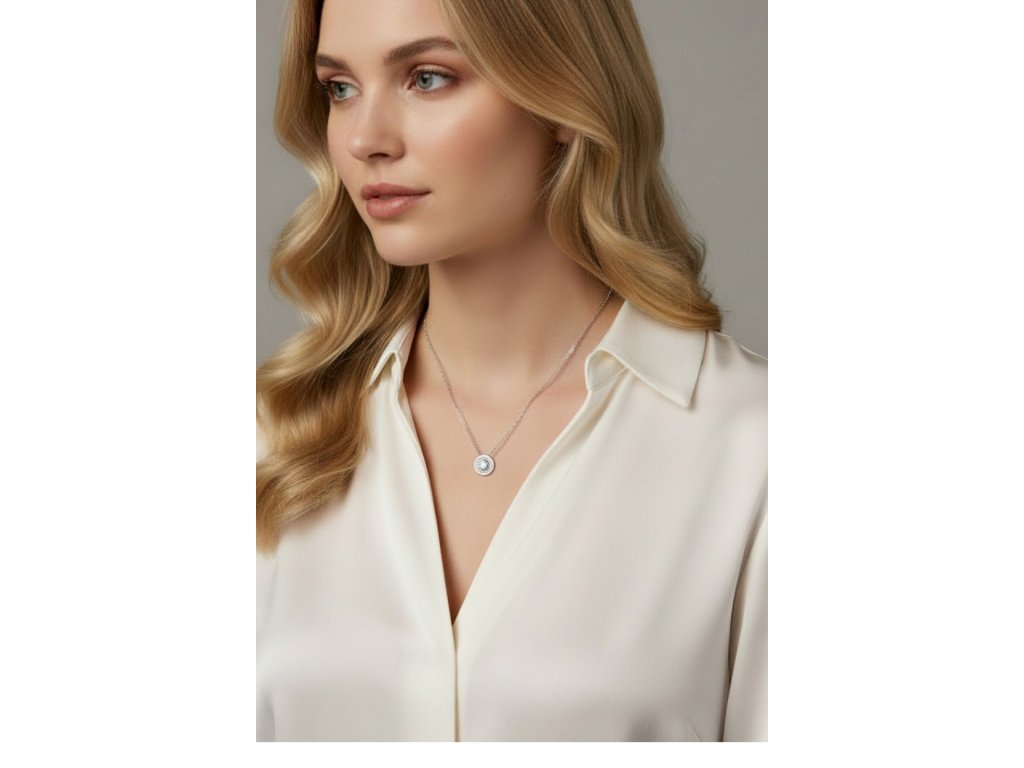 Strieborný náhrdelník s okrúhlym príveskom zo zirkónmi EZB115460