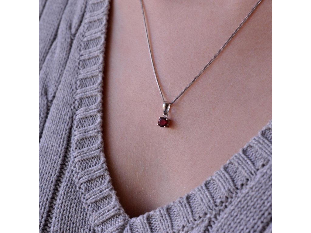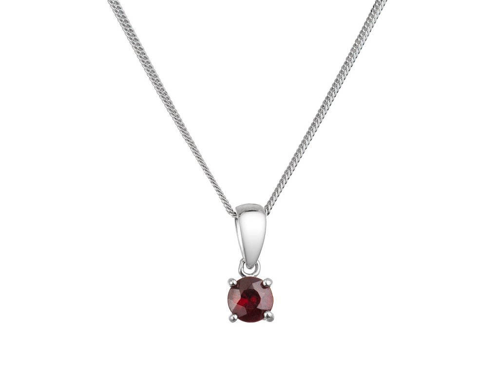 Náhrdelník 12078.3 je vyrobený zo striebra rýdzosti 925/1000 vrátane povrchovej úpravy ródiom s okrúhlym pravým granátom . Priemer kameňa je 5 mm a dĺžka striebornej retiazky je 45 cm.