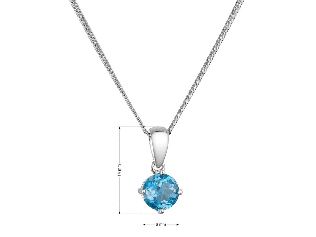 Náhrdelník 12079.3 je vyrobený zo striebra rýdzosti 925/1000 vrátane povrchovej úpravy ródiom s okrúhlym pravým topazom . Priemer kameňa je 6 mm a dĺžka striebornej retiazky je 45 cm.