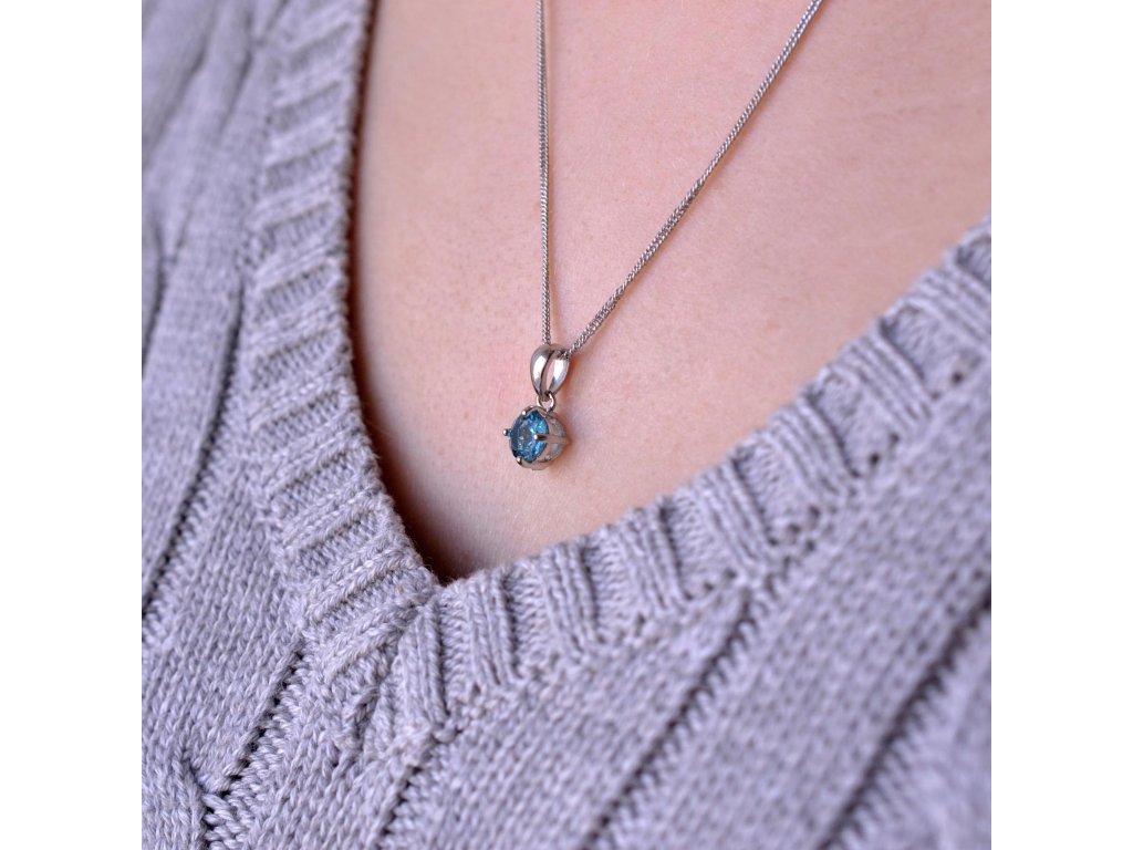 Strieborný náhrdelník s pravým minerálnym kameňom modrý 12079.3 london topaz