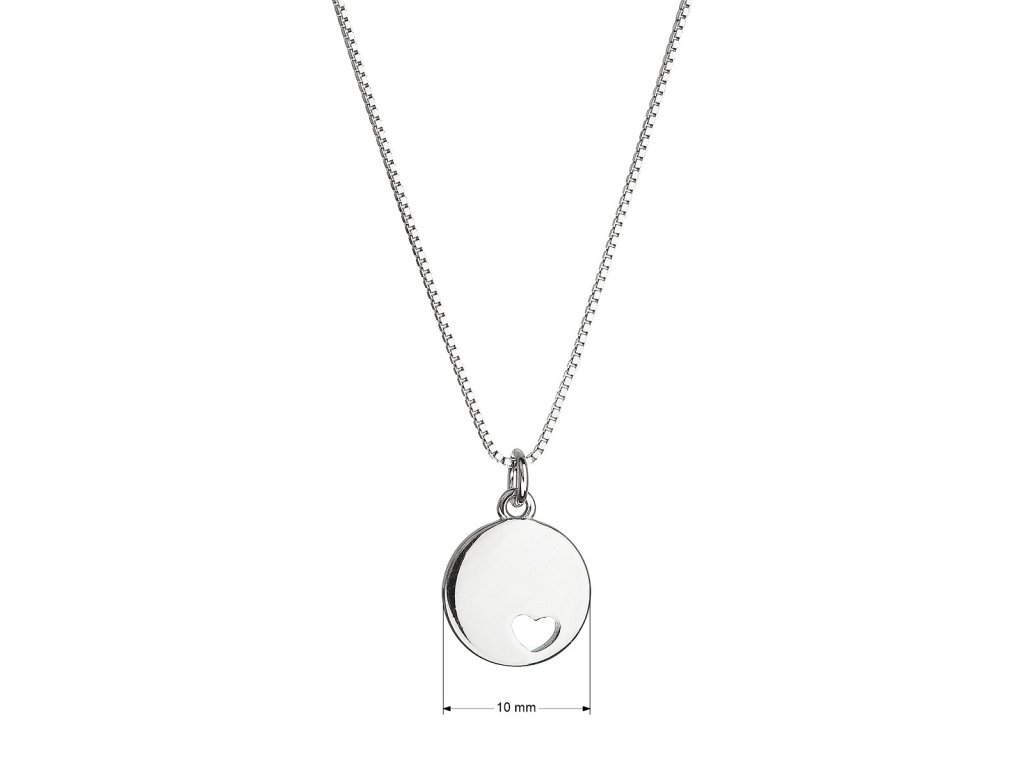 Elegantný strieborný náhrdelník s moderným príveskom v tvare lesklej placky navyše s malým srdiečkom vo vnútri. Jednoduchý a nápaditý dizajn. Choďte s módou! Placička má priemer 10 mm a krásne sa leskne. Náhrdelník 62006 je vyrobený zo striebra o rýdzosti 925/1000 vrátane povrchovej úpravy ródiom. Ródium ochráni šperk proti sčernaniu, zožltnutiu aj poškriabaniu.