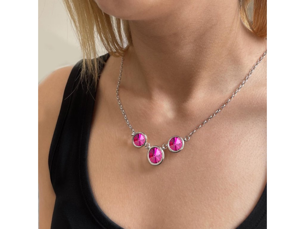 Výrazným strieborným náhrdelníkom s ružovými Swarovski krištáľmi doplníte akýkoľvek outfit.