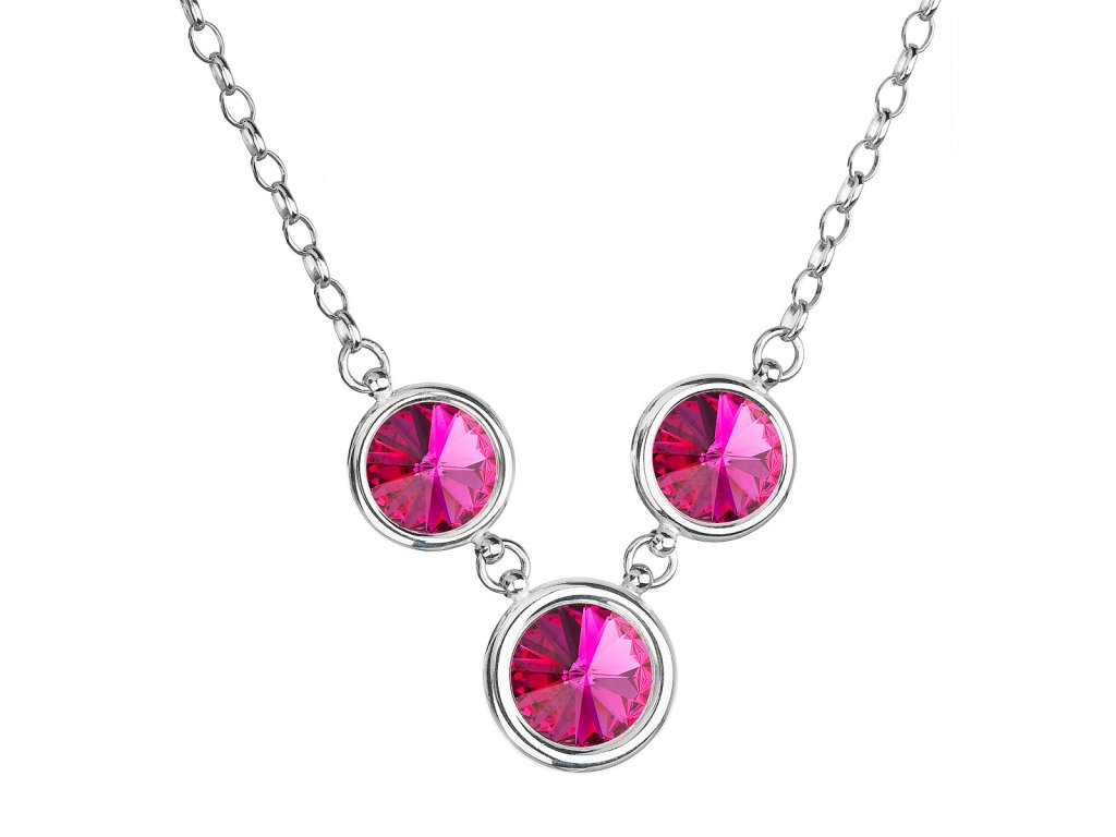 Strieborný náhrdelník so Swarovski krištáľmi guľatý 32033.3 fuchsia