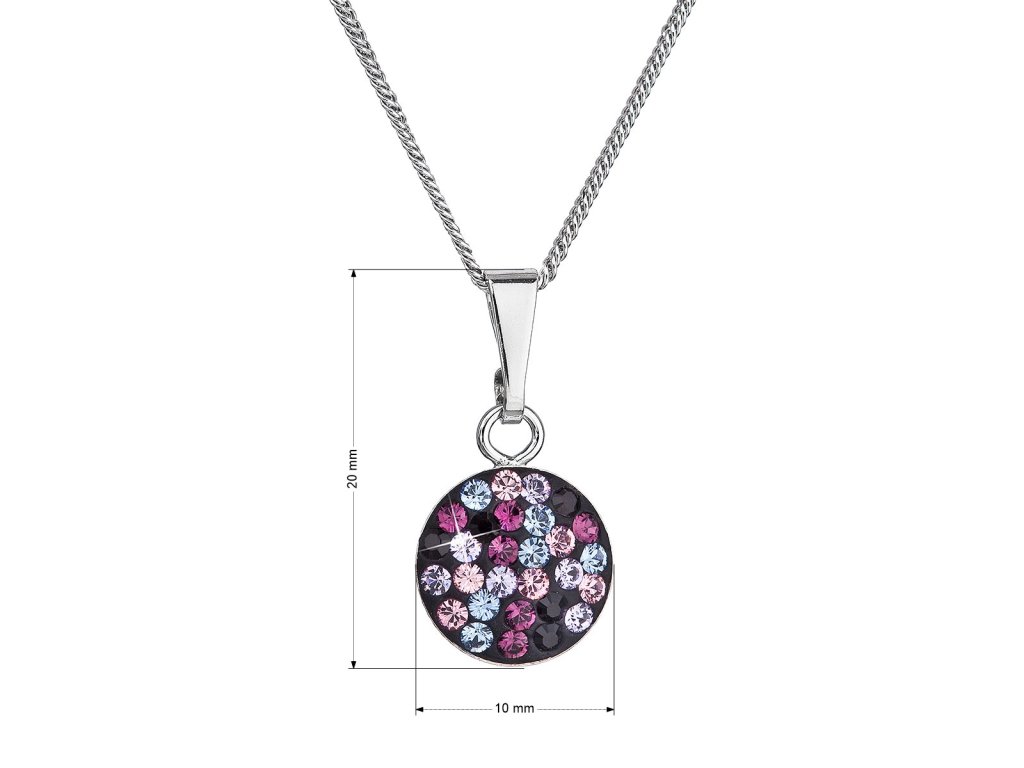 Strieborný okrúhly náhrdelník 32086.3 má priemer 10 mm a je zdobený mnohými malými okrúhlymi Swarovski kryštálmi vo fialových farbách. Na náhrdelník bolo použité striebro rýdzosti 925/1000, ktorého povrch prešiel úpravou ródiom. Rhodium šperk ochráni proti sčernaniu, zožltnutiu alebo poškriabaniu. Neobsahuje nikel , a tak ho môžu bez obáv nosiť aj alergici. Náhrdelník 32086.3 magic violet s kryštálmi Swarovski pre vás ručne vyrobili naše šikovné šperkárky v Jablonci nad Nisou. Poctivú ručnú prácu vám dokladá pečať kvality. O pravosti striebra a Swarovski kryštálov vás presvedčí certifikát pravosti , ktorý je k výrobku priložený. Šperk vám zadarmo zabalíme do darčekovej krabičky.