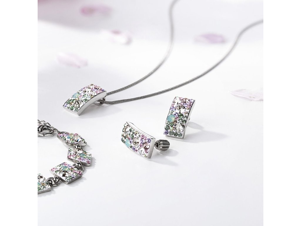 Strieborný náhrdelník so Swarovski krištáľmi ružovo-zelený obdĺžnik 32074.3 sakura
