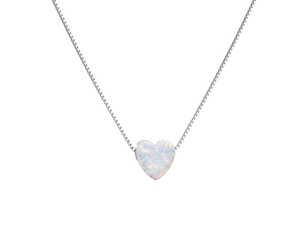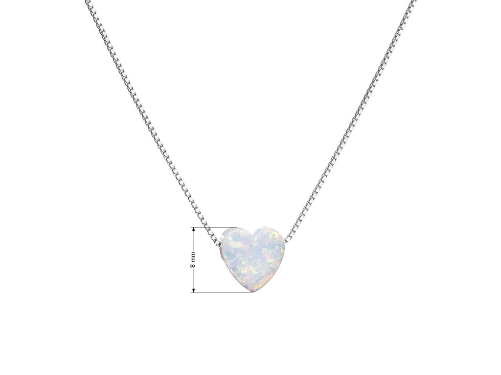 Strieborný náhrdelník so syntetickým opálom biele srdce 12048.1