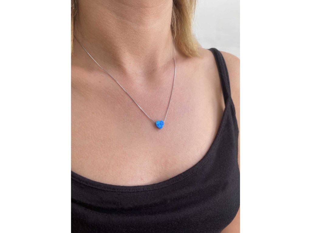 Retiazka je vyrobená zo striebra o rýdzosti 925/1000 vrátane povrchovej úpravy ródiom. Ródium ochráni šperk proti sčerneniu, zožltnutiu i poškriabaniu. Retiazka je prevlečená príveskom v tvare srdiečka vyrobeného zo syntetického opálu modrej farby. Náhrdelník neobsahuje nikel, a tak ho bez obáv z nepríjemnej reakcie môžu nosiť aj alergici.