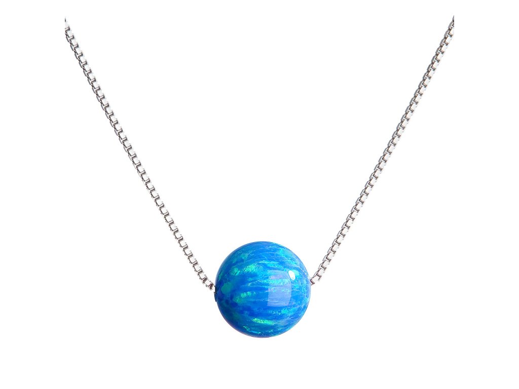 Strieborný náhrdelník so syntetickým opálom modrý okrúhly 12044.3