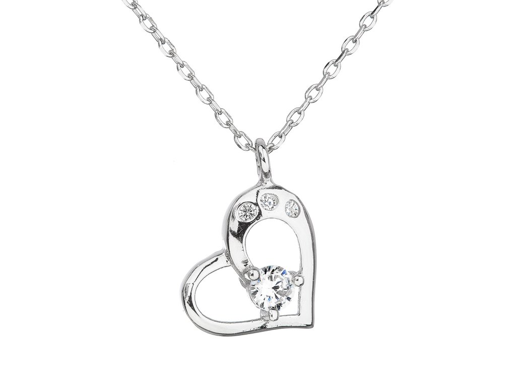Strieborný náhrdelník so zirkónom biele srdce 12022.1