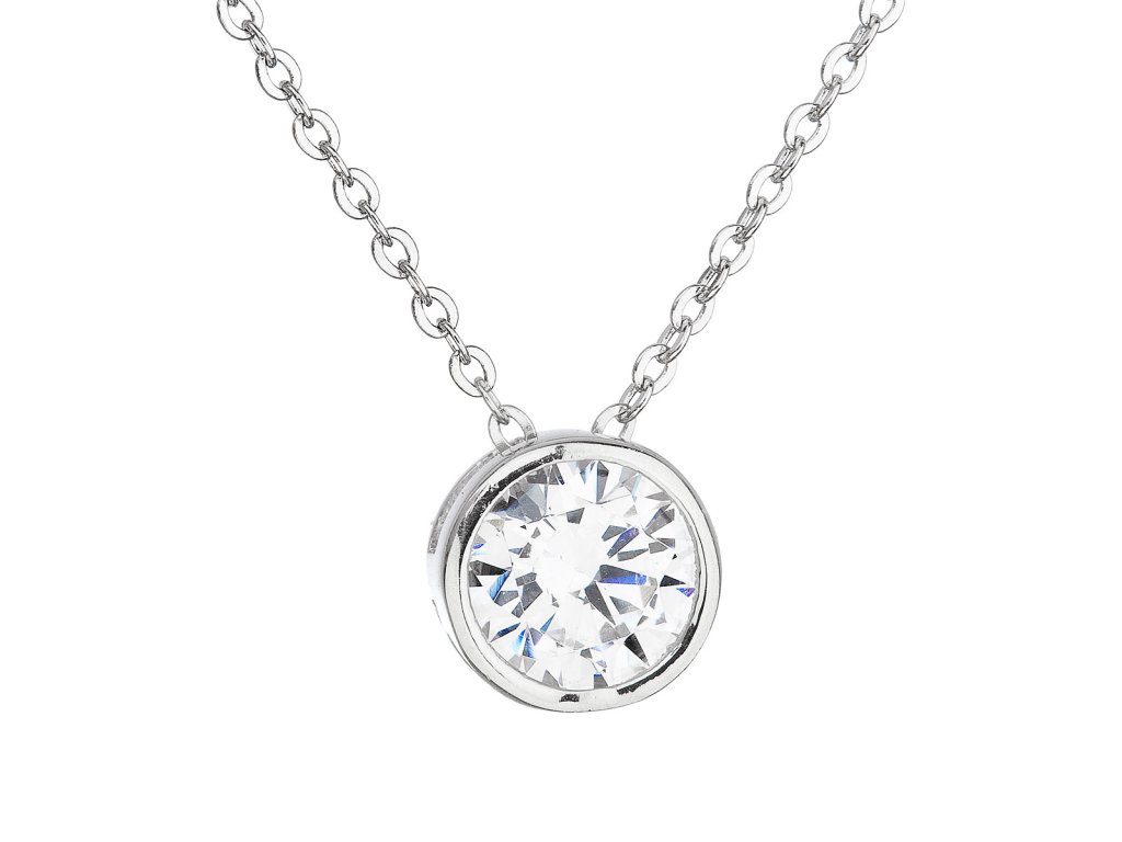 Elegantný, jemný a zároveň luxusný strieborný náhrdelník s veľkým okrúhlym zirkónom bielej farby.