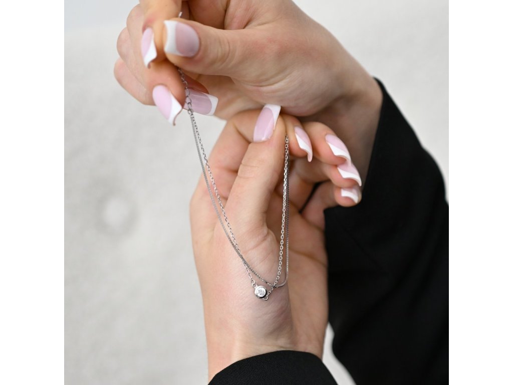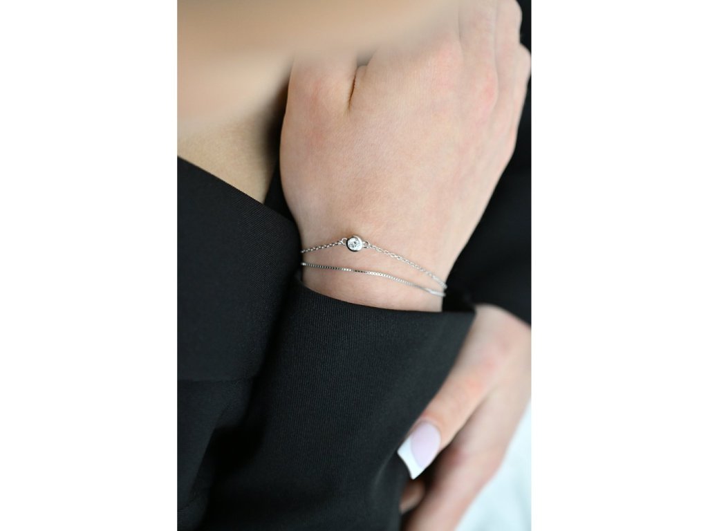 Moderný a elegantný je dvojitý náramok so žiarivým zirkónom. Choďte s módou a urobte sebe alebo druhým radosť náramkom s dvojitou retiazkou, každý v inom dizajne a navyše s krásnym zirkónom. Zirkón je malý len 5 mm, krásne sa k retiazkam hodí. Na vašom zápästí bude luxusne žiariť.