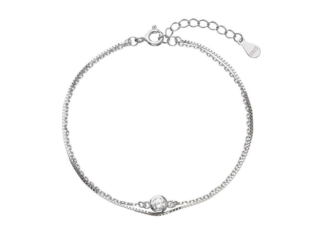 Strieborný náramok dvojitá retiazka so zirkónom 63006