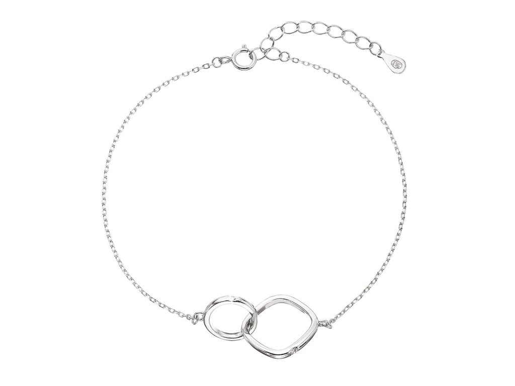 Veľmi nežne pôsobiaci minimalistický náramok so spojeným štvorcom a kruhom s drobnými zirkónmi.