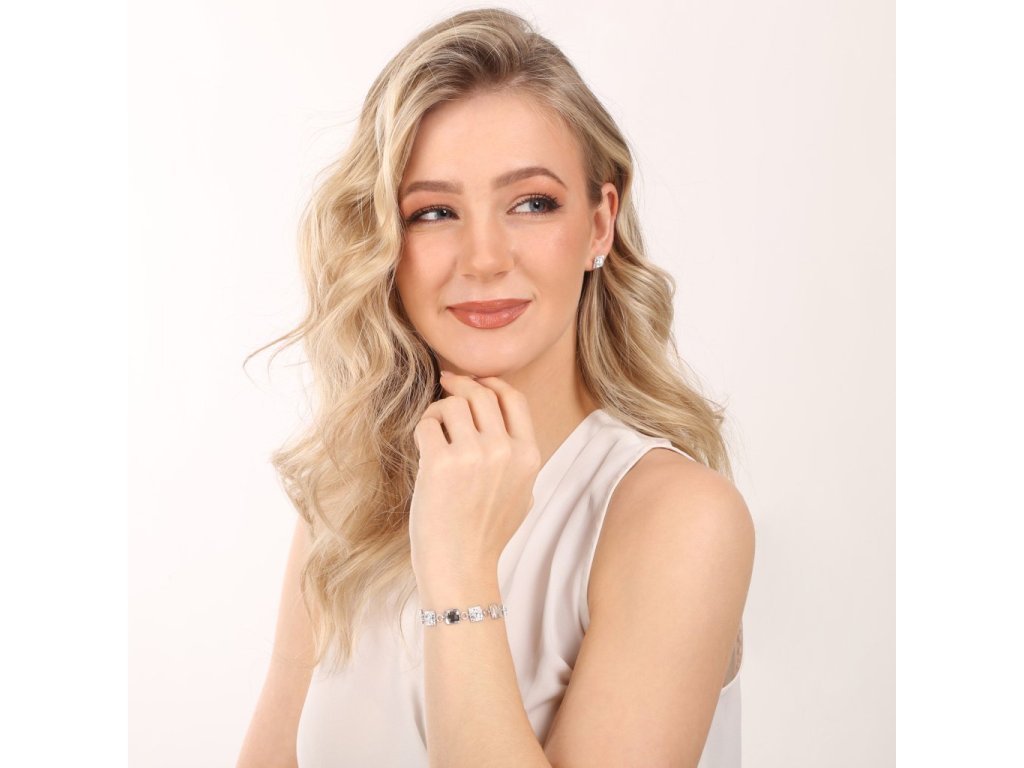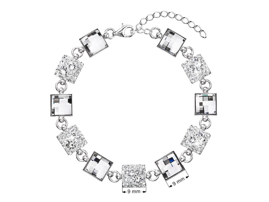 Náramok 33047.1 je vyrobený zo striebra 925/1000 s povrchovou úpravou ródiom. Ródium chráni šperk pred zčernáním, zožltnutím a poškriabaním. Náramok s dĺžkou 17 cm je zložený z niekoľkých štvorcov vysadených bielymi Swarovski krištáľmi. Šperk neobsahuje nikel, a tak je vhodný pre citlivé osoby a alergikov.