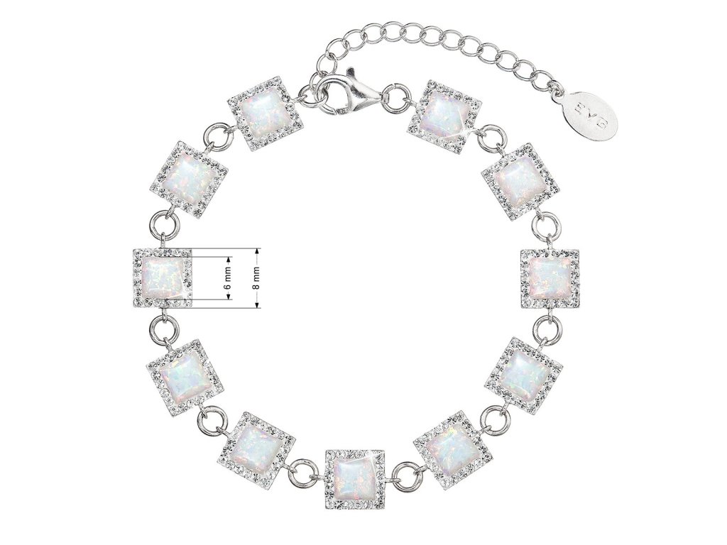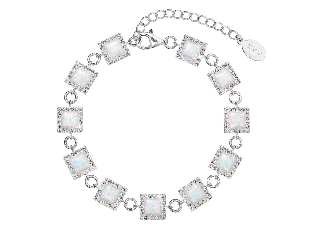 Strieborný náramok so syntetickým opálom a krištáľmi Preciosa biely štvorec 33047.1 white