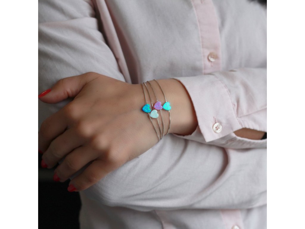 V krásnom letnom období nechajte vaše zápästie zvýrazniť jemným strieborným náramkom s opálom tvaru srdiečka.