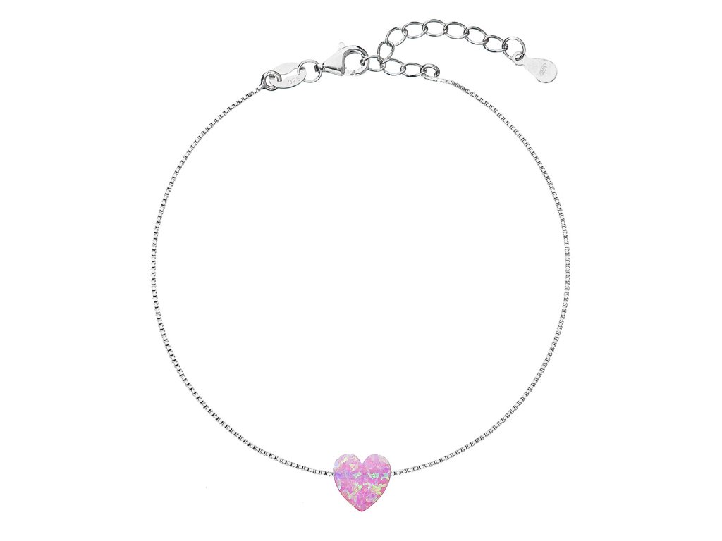 Strieborný náramok so syntetickým opálom ružové srdce 13018.3