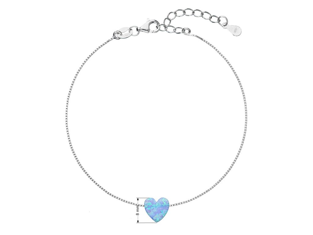 Jednoduchý náramok je vyrobený zo striebra o rýdzosti 925/1000 vrátane povrchovej úpravy ródiom. Ródium ochráni šperk proti sčerneniu, zožltnutiu i poškriabaniu. Retiazka náramku je prevlečená srdiečkom zo syntetického opálu svetlo modrej farby. Náramok neobsahuje nikel, a tak ho bez obáv z nepríjemnej reakcie môžu nosiť aj alergici.
