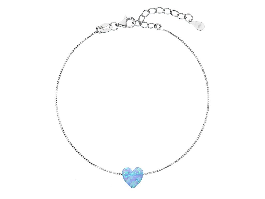 V krásnom letnom období nechajte vaše zápästie zvýrazniť jemným strieborným náramkom s opálom tvaru srdiečka.