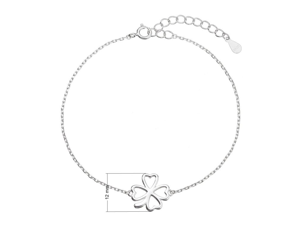 Strieborný náramok s príveskom v tvare štvorlístka je elegantný a jemný šperk, ideálny pre každodenné nosenie aj zvláštne príležitosti. Náramok je vyrobený z kvalitného striebra rýdzosti 925/1000 a je opatrený vrstvou ródia, ktorá šperk ochráni pred sčernením, zožltnutím alebo poškriabaním .