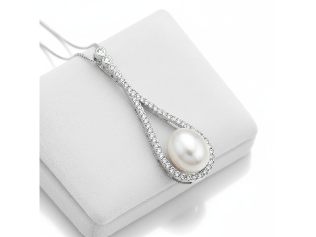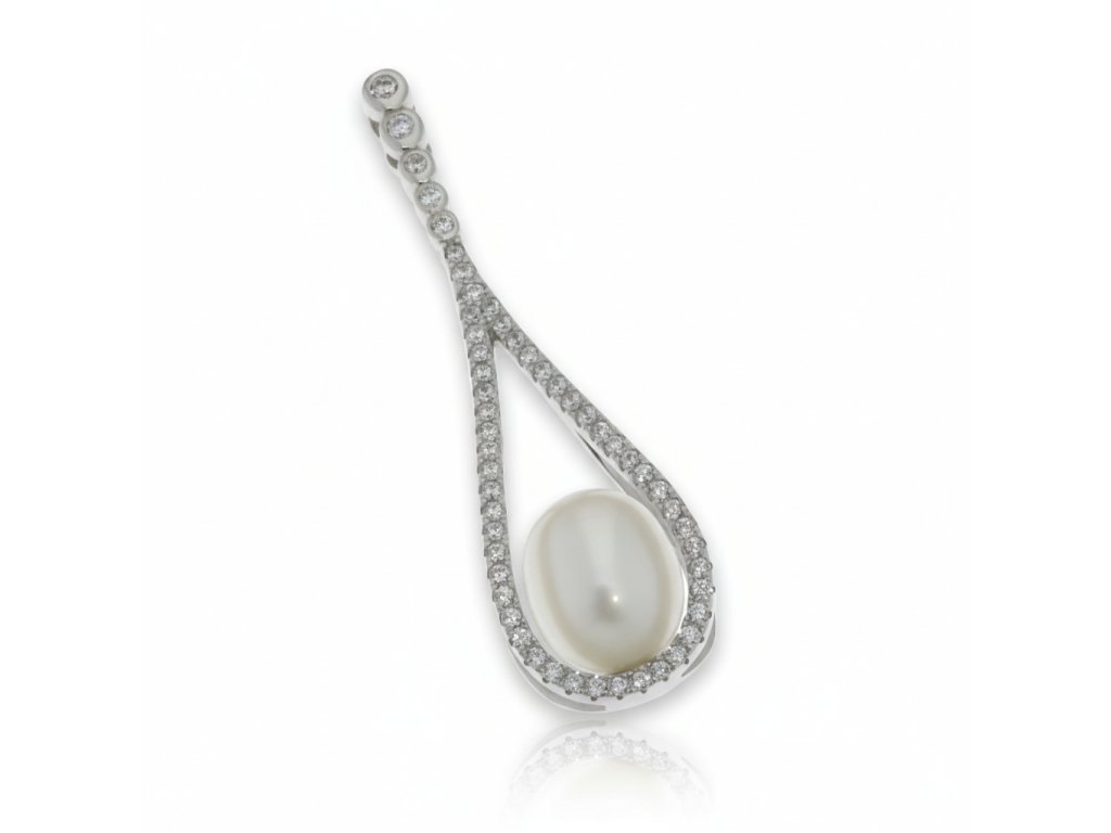 Strieborný perlový prívesok osadený zirkónmi PPC72133