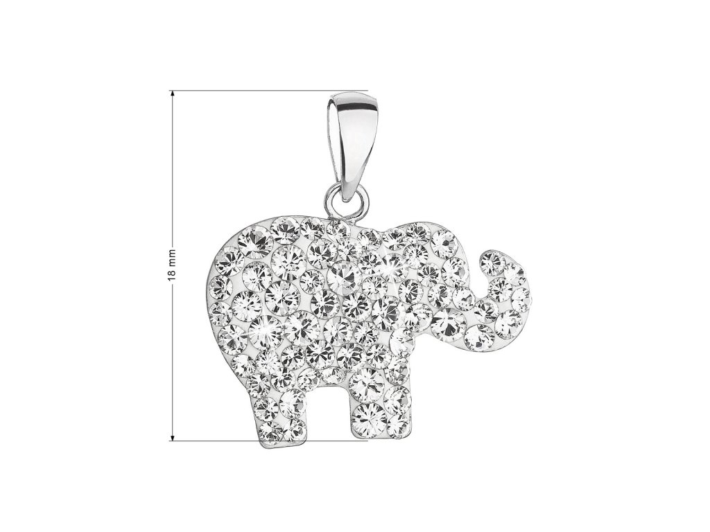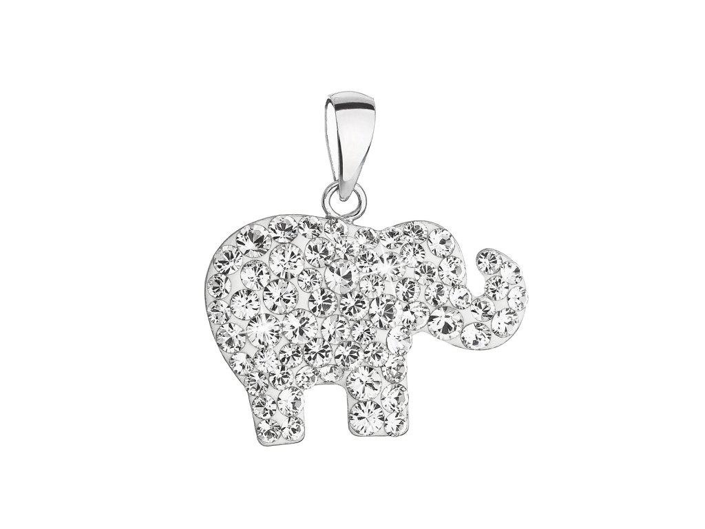 Strieborný prívesok s krištálmi Swarovski biely slon 34247.1