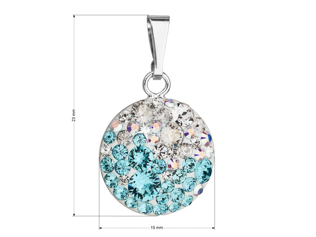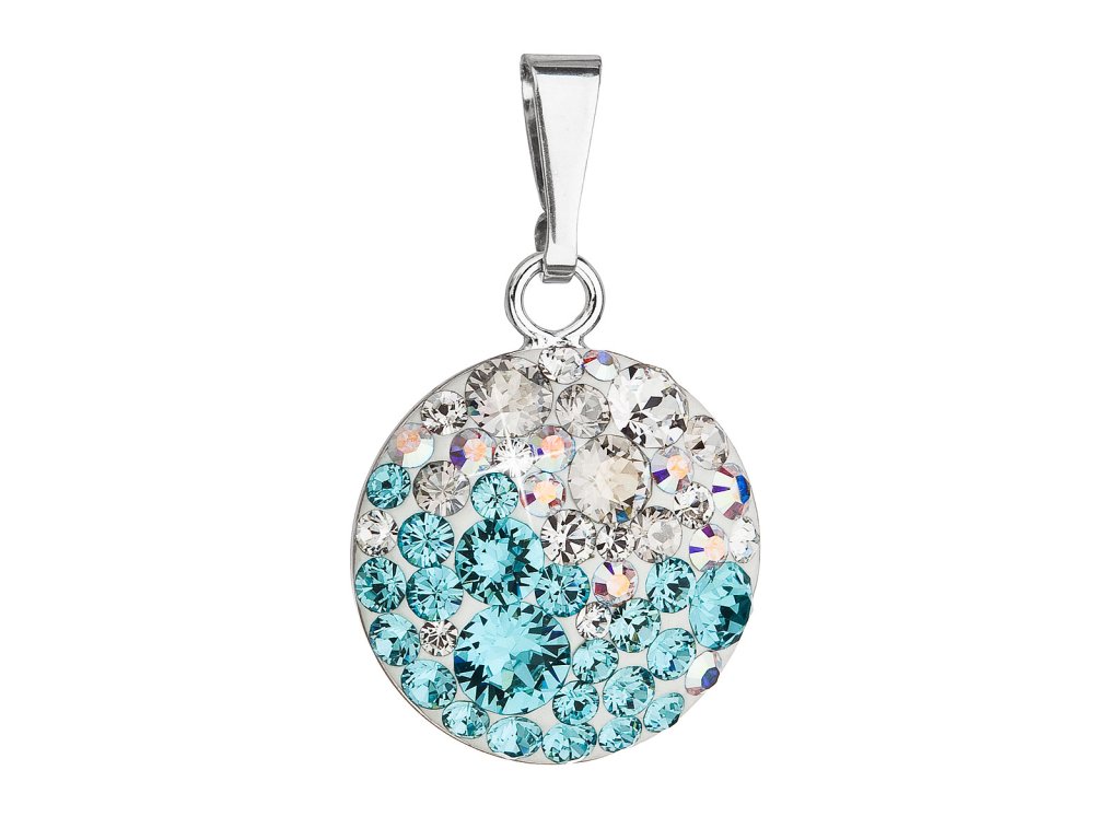 Strieborný prívesok s krištálmi Swarovski modrý okrúhly 34225.3 light turquoise