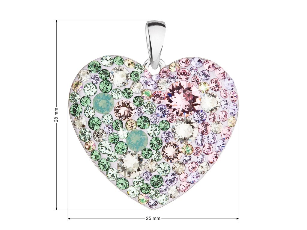 Parametre strieborného prívesku s krištáľmi Swarovski mix farieb srdce 34243.3 sakura