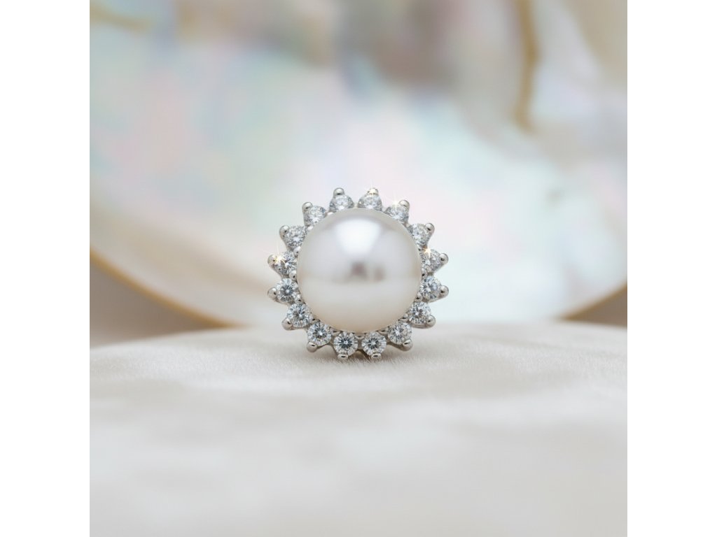 Strieborný prívesok s perlou obalený zirkónmi PPB79937