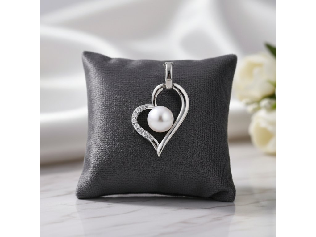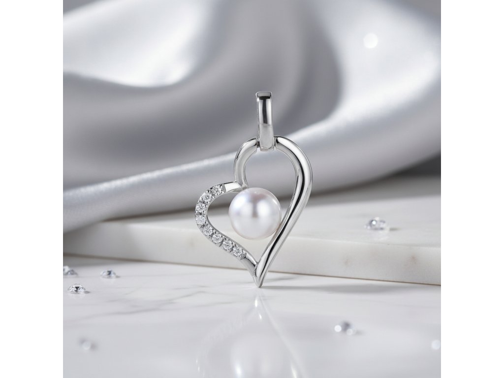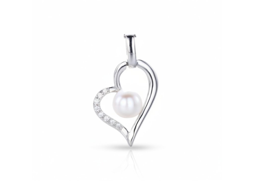 Strieborný prívesok v tvare srdca s perlou v strede PPB114385