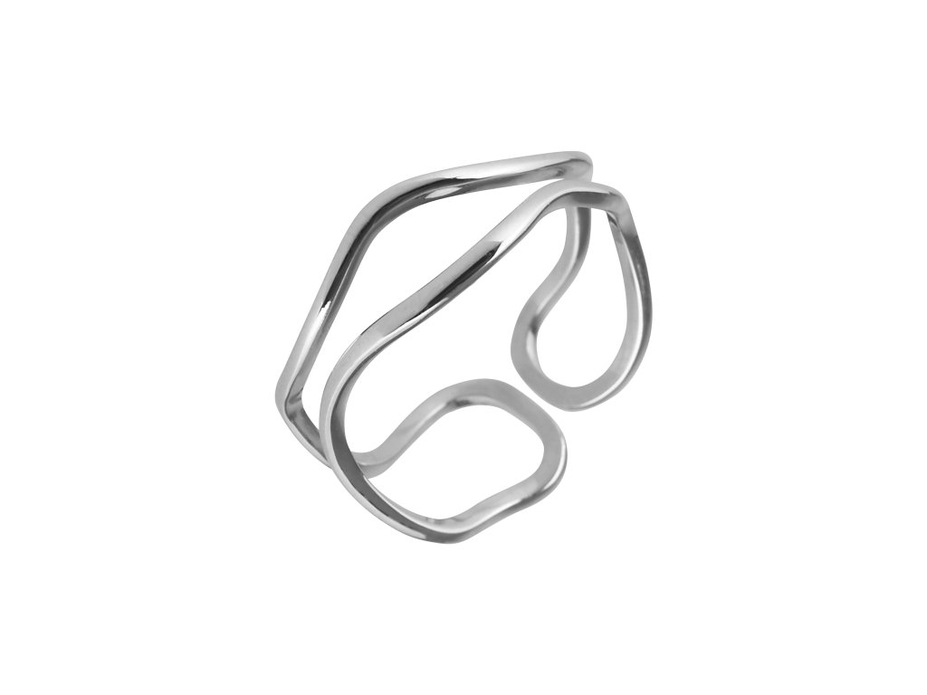 Tento minimalistický prsteň na prvý pohľad zaujme svojimi dynamicky zvlnenými líniami, ktoré sa kľukatia v nepravidelných krivkách pozdĺž jeho obvodu. Prstienok ponúka možnosť nastavenia veľkosti podľa potreby .