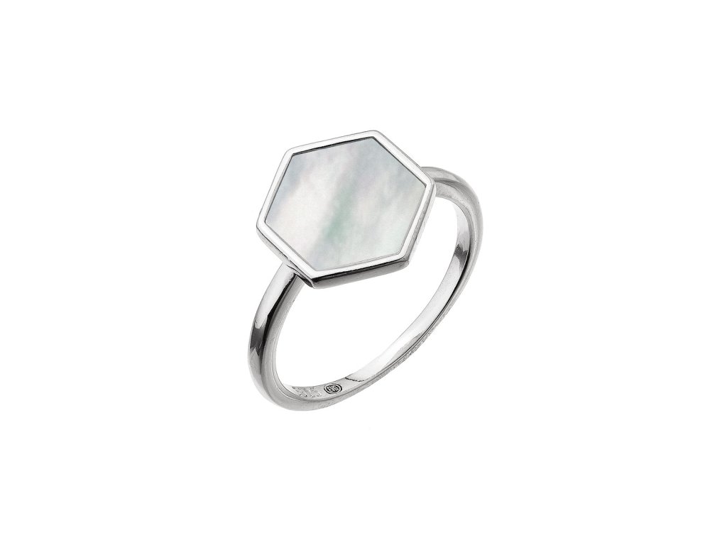 Strieborný prsteň hexagón s bielou perleťou 15021.1