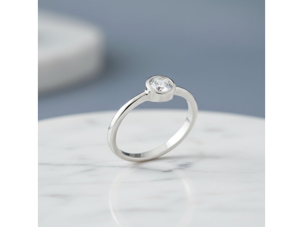 Strieborný prsteň s jemným lesklým zirkónom RZA95558