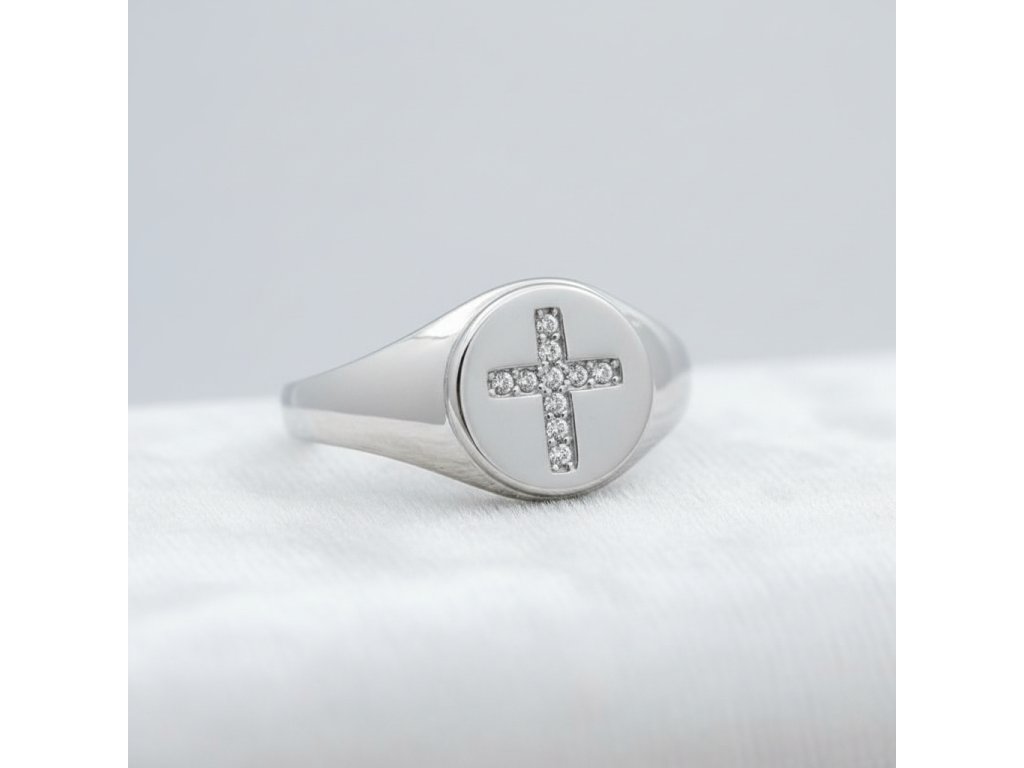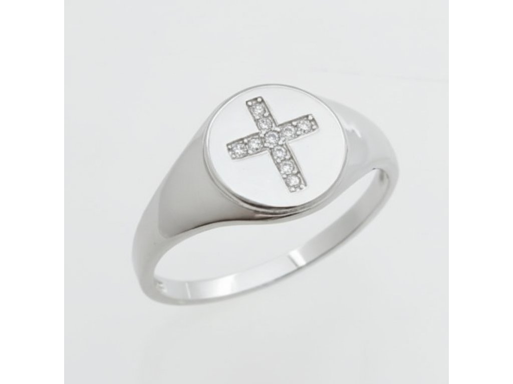 Strieborný prsteň s krížom osadeným zirkónmi RZB114087