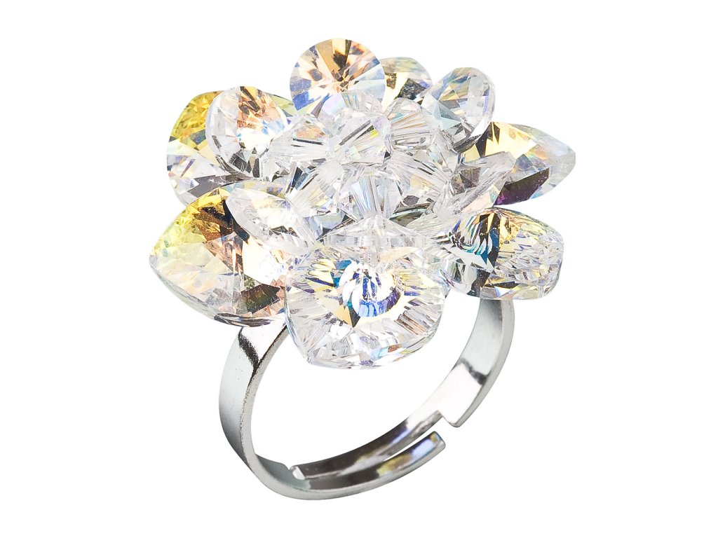 Strieborný prsteň s kryštálmi Swarovski AB efekt biela kvietka 35012.2
