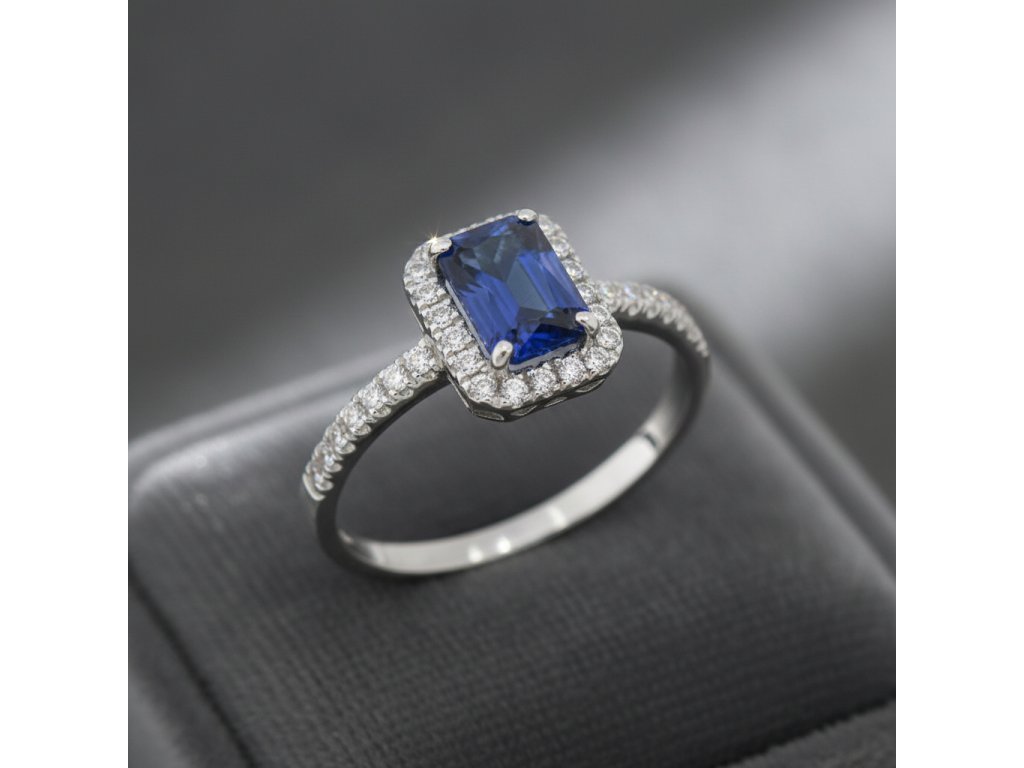 Strieborný prsteň s lesklým modrým kameňom a jemnými zirkónmi v.50 RZB52088