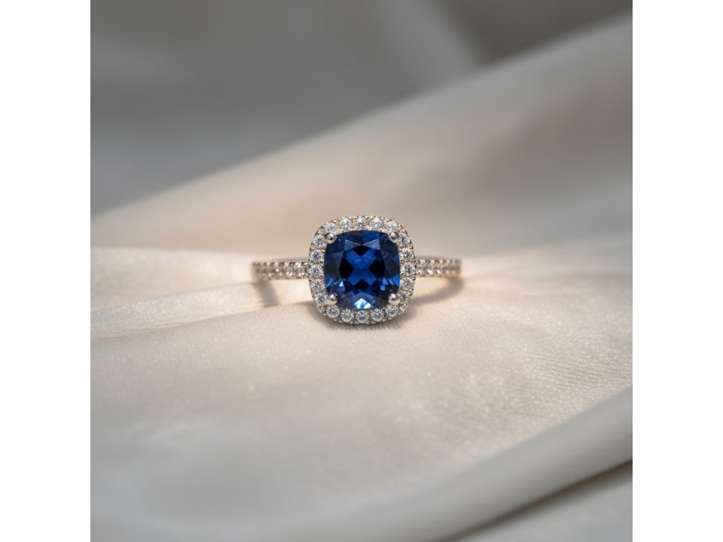 Strieborný prsteň s modrým štvorcovým zirkónom zdobený čírymi zirkónmi RZB67993