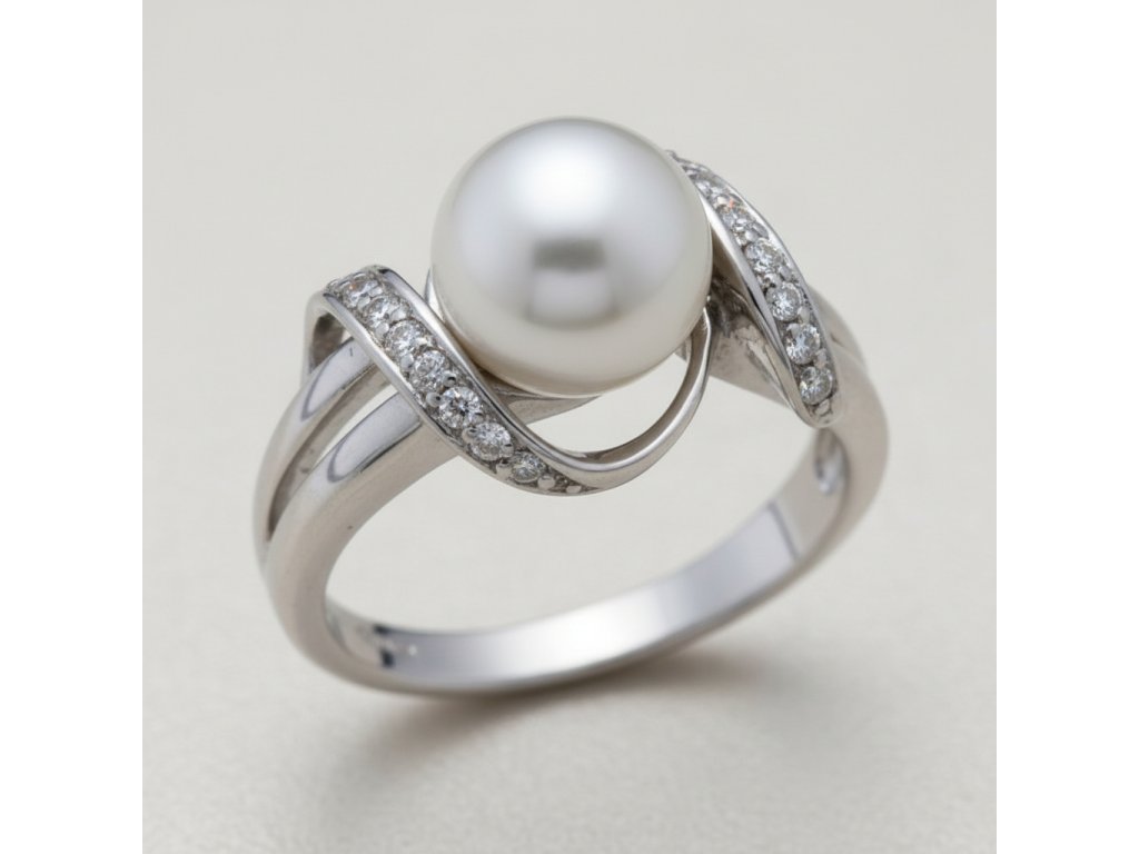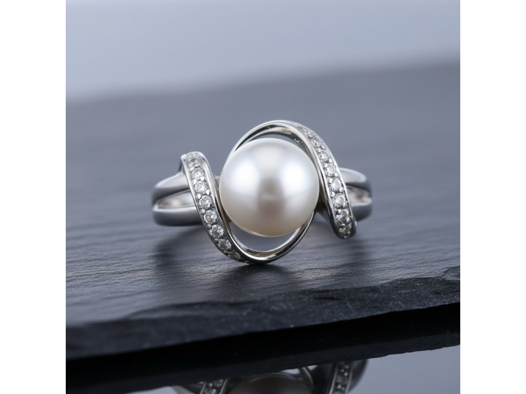 Strieborný prsteň s perlou okrášlený zirkónmi v.52 RPB60050