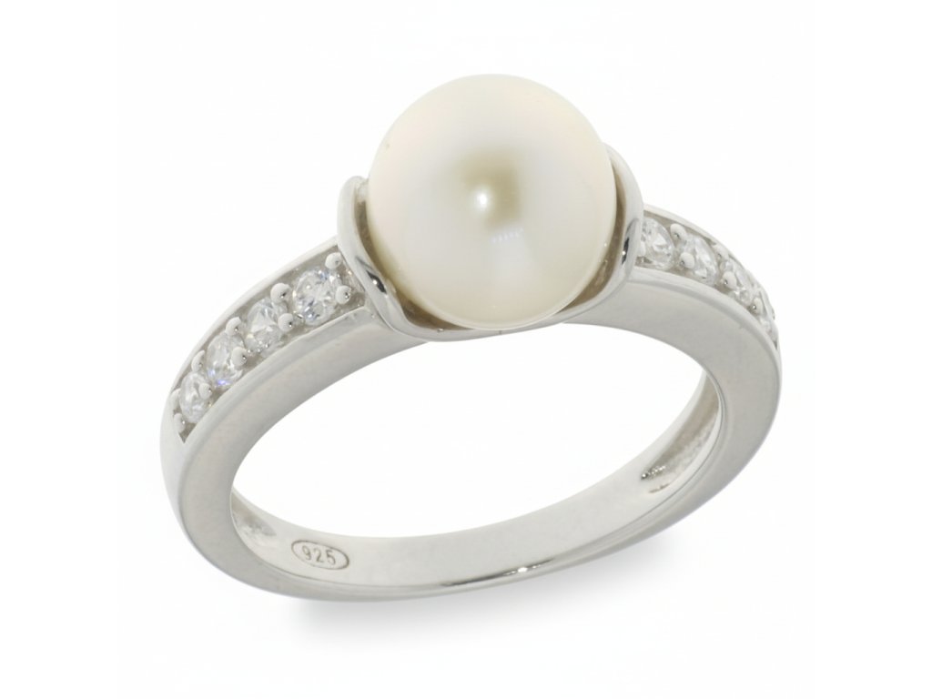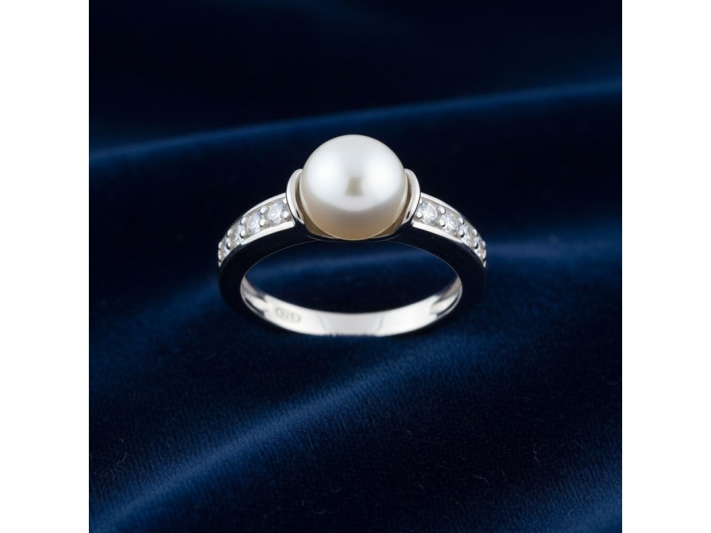 Strieborný prsteň s perlou zdobený malými zirkónmi v.54 RPB78678