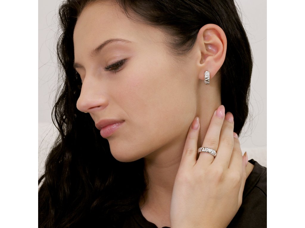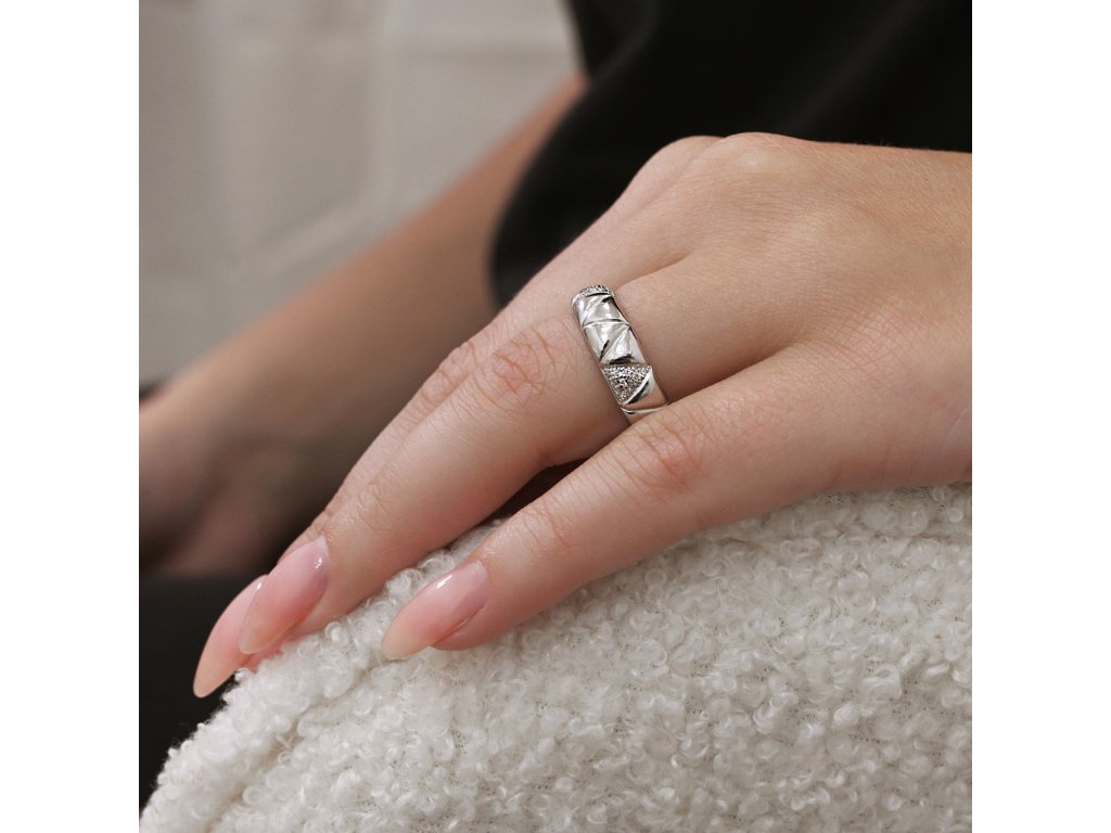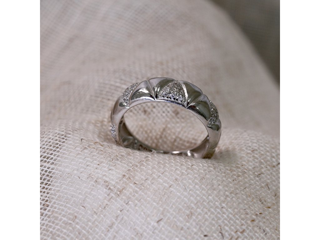 Strieborný prsteň s vzor so zirkónmi 15035.1