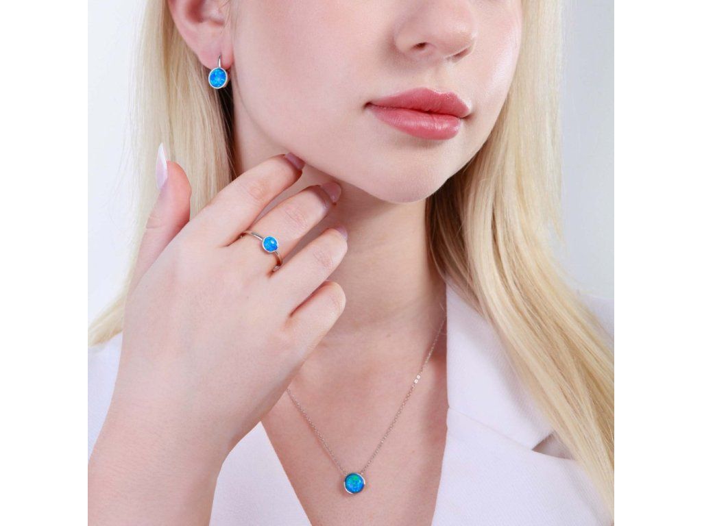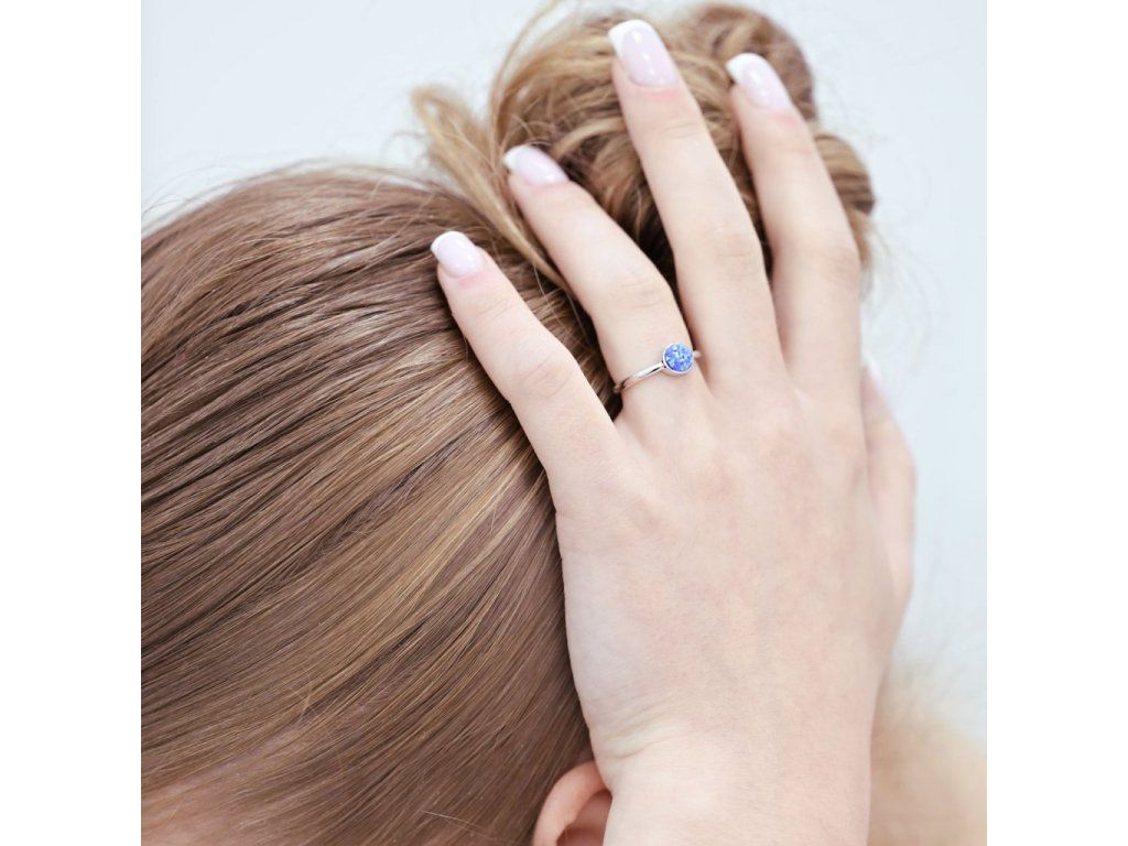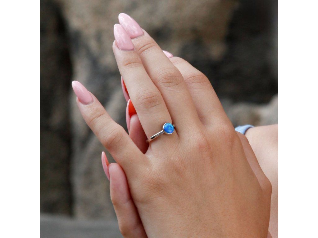 Strieborný prsteň so syntetickým opálom modrý okrúhly 15001.3