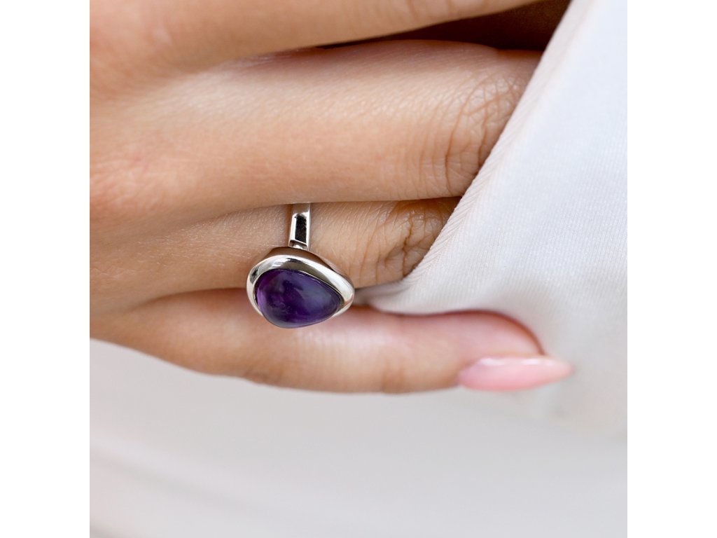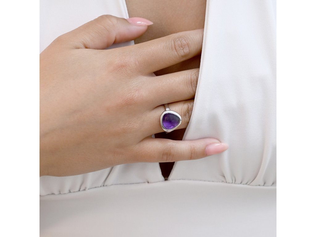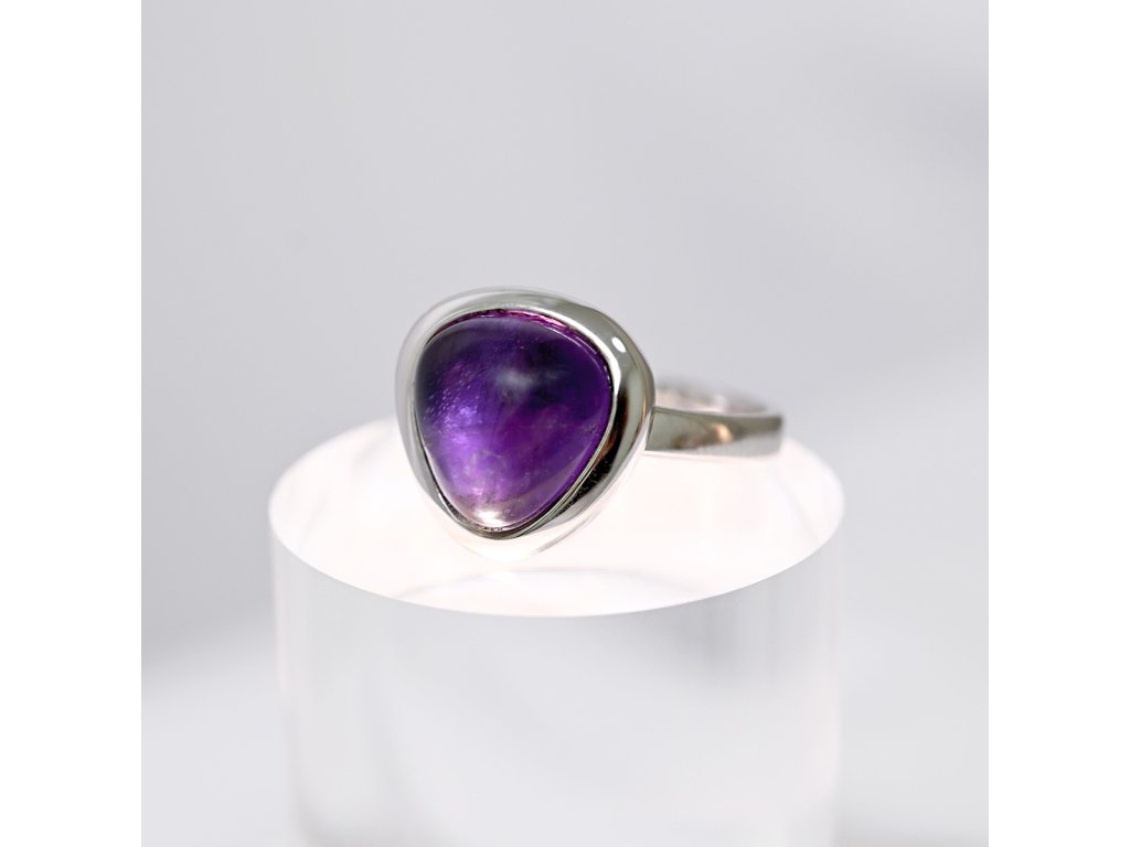 Očarujúce strieborný trojuholníkový prsteň s pravým ametystom – tajomstvo vnútornej sily a duchovna.