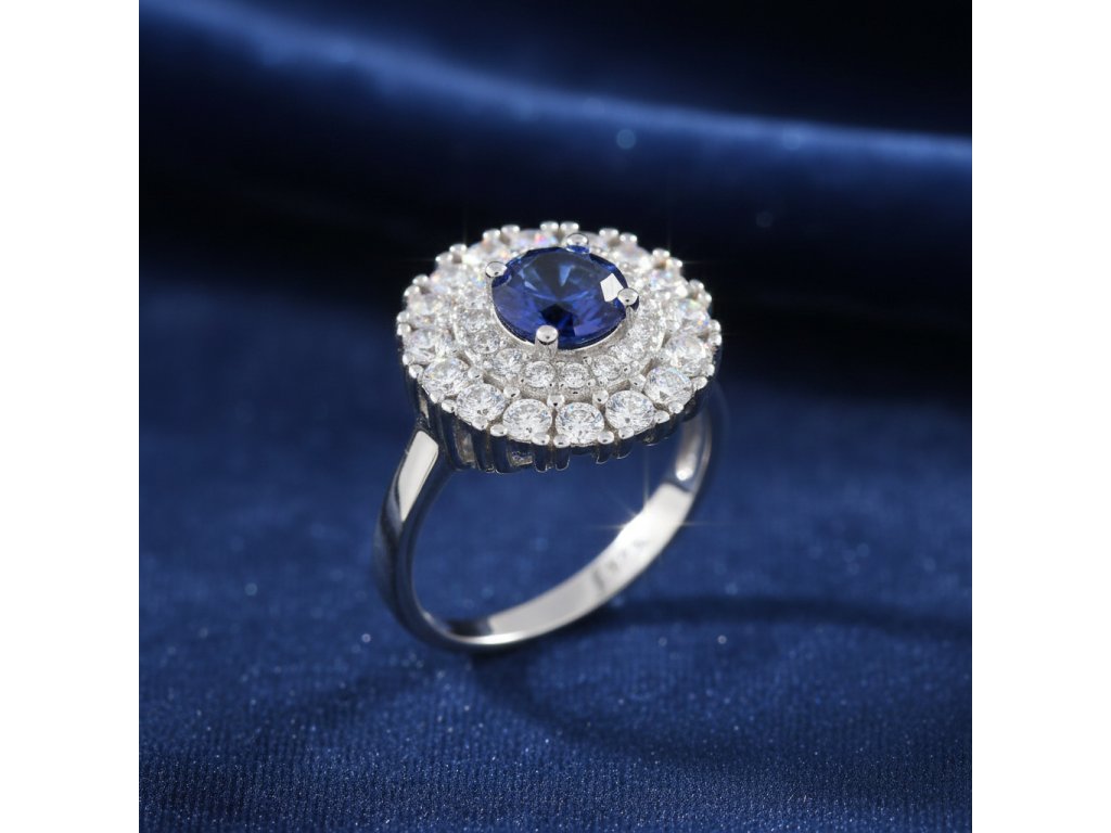 Strieborný prsteň zdobený tmavomodrým zirkónom v.54 RZC106423