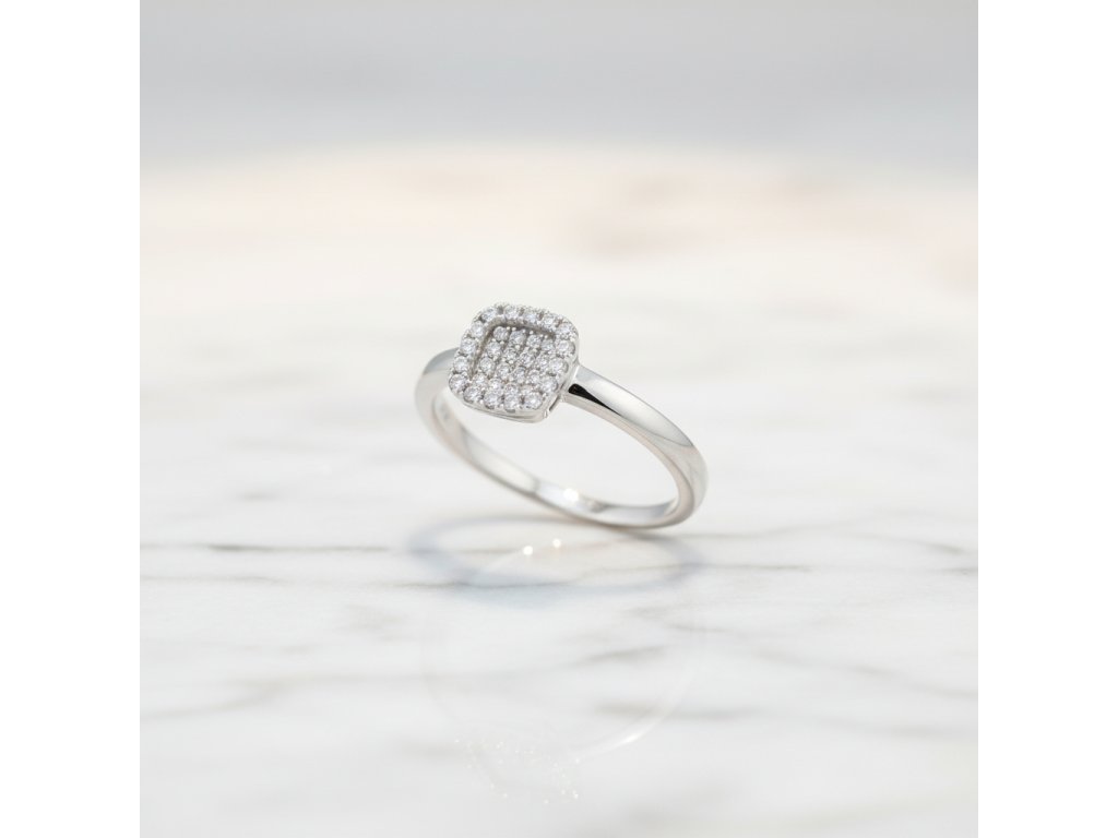 Strieborný štvorcový prsteň so vsadenými zirkónmi RZB79845