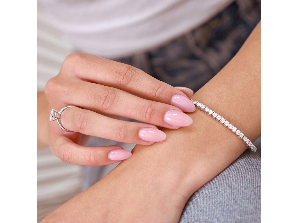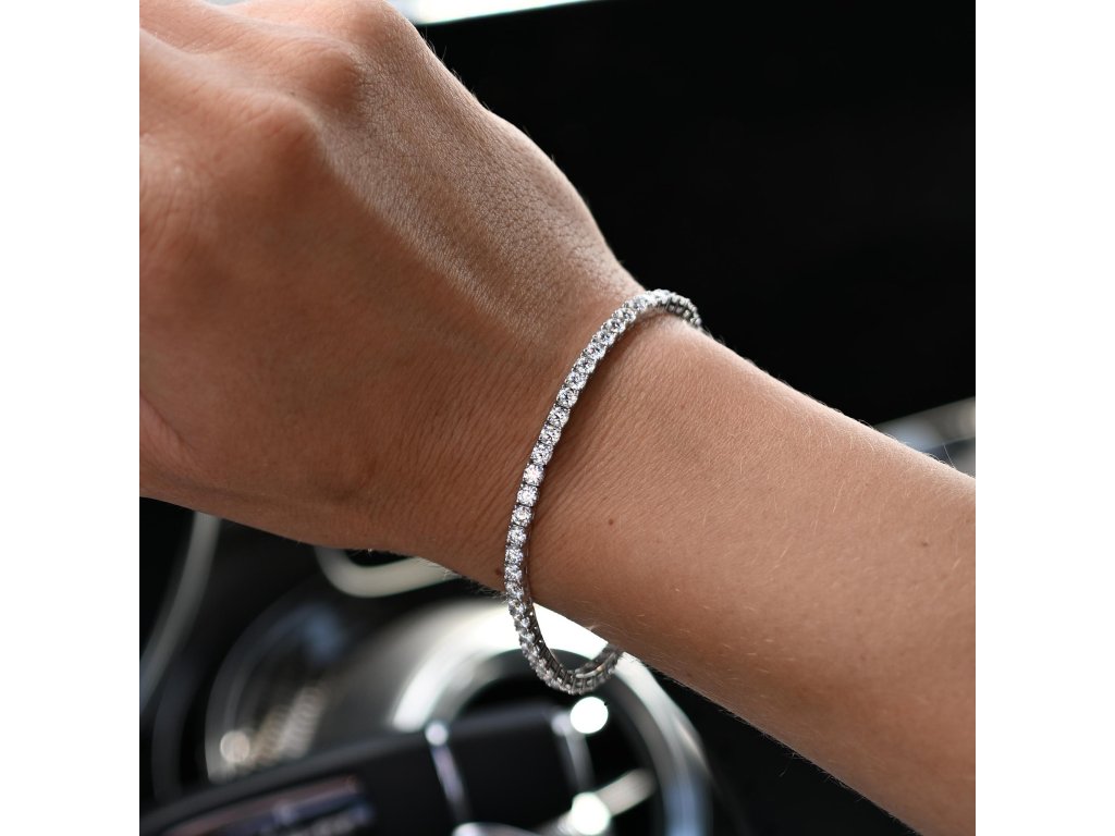 Nechajte sa očariť moderným poňatím klasiky s týmto exkluzívnym tenisovým náramkom, ktorý svojim dokonalým spracovaním a trblietavou krásou zaujme na prvý pohľad. Celý šperk vrátane jemného zapínania je vysadený trblietavými moissanitmi , ktorých jedinečná schopnosť lámať svetlo vytvára fascinujúcu hru svetiel s každým vašim pohybom.