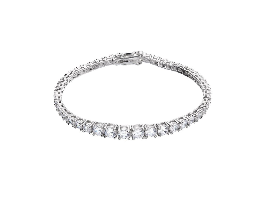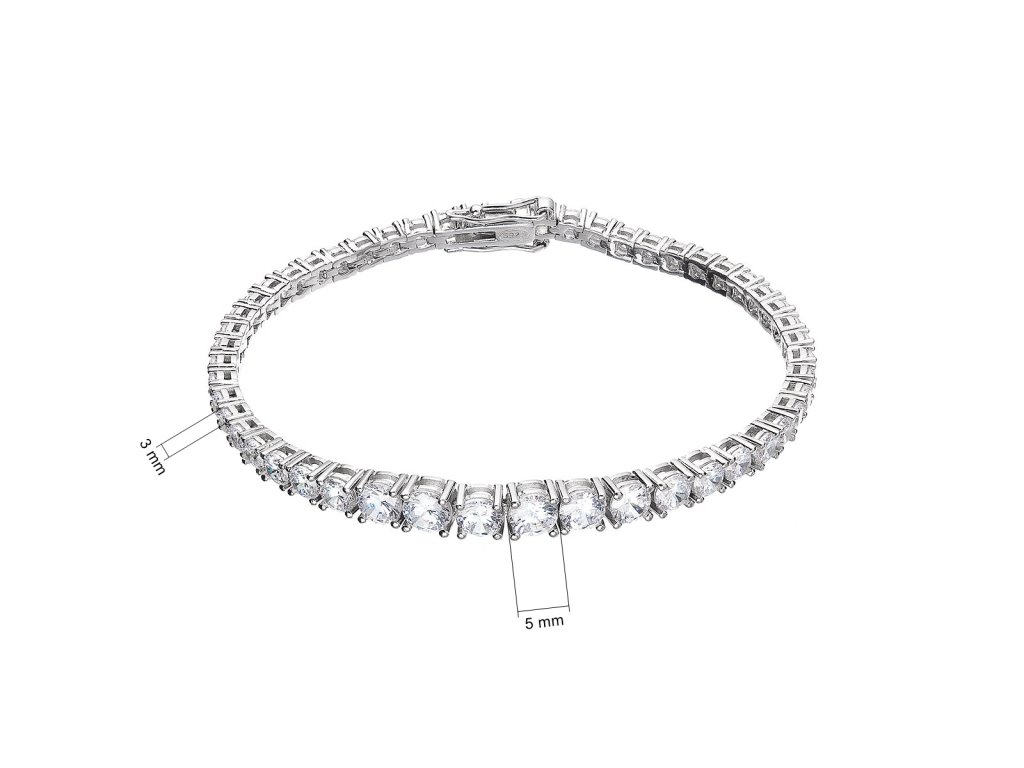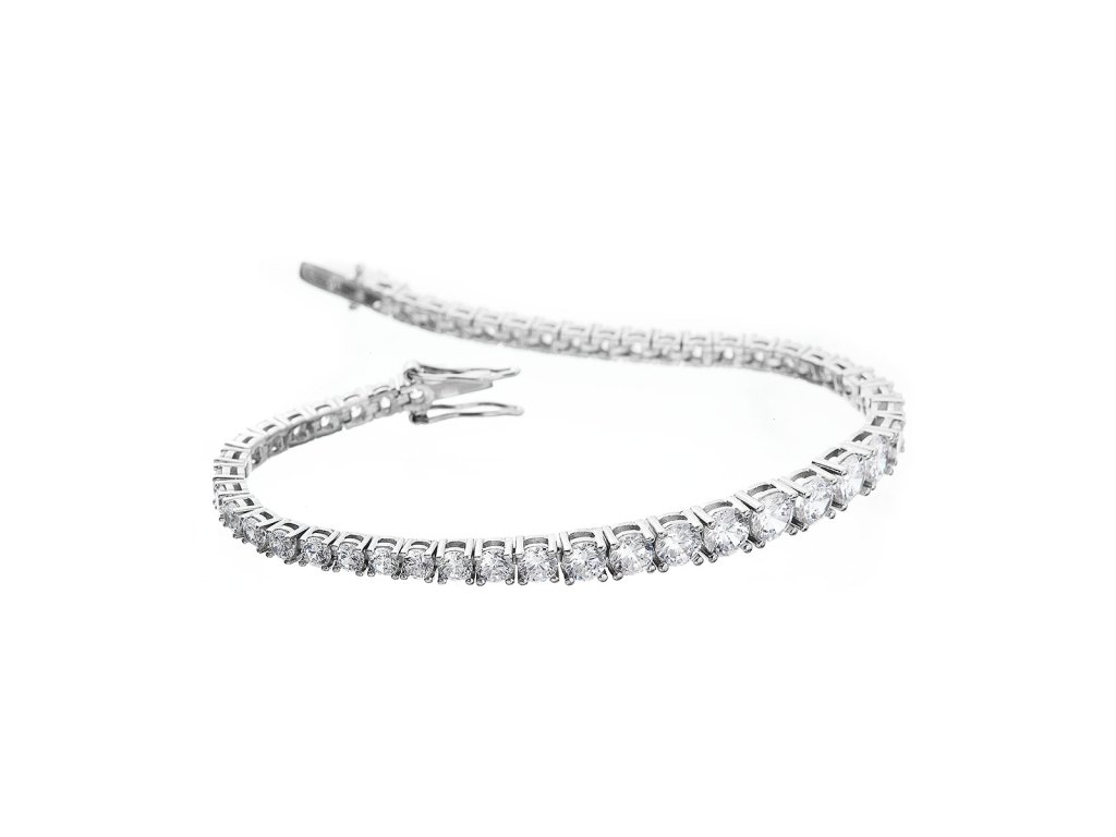 Tenisový náramok - jeden z najelegantnejších šperkov , Ktorý si môžete dopriať. Náramok je charakteristický nepretržitou reťazou kameňov, v tomto prípade trblietavých zirkónov, ktoré sú vsadené do základu zo striebra rýdzosti 925/1000. Guľaté z irkóny o veľkosti 3 - 5 mm vytvoria fascinujúcu svetelnú symfóniu na vašom zápästí.