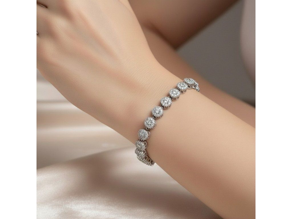 Strieborný tenisový náramok so zirkónmi v tvare kvetiniek BZB105721