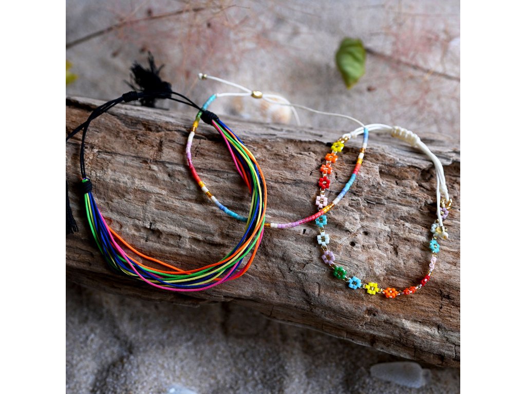 Sada 3 farebných náramkov - tri originálne kúsky, ktoré spolu nádherne ladia. Každý náramok je vzhľadovo iný, môžete ich nosiť dohromady pre výrazný look alebo jednotlivo podľa nálady a outfitu. Ideálny doplnok, ktorý oživí každý outfit.