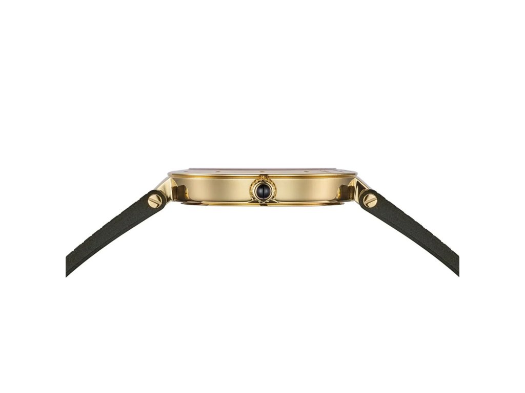 Puzdro zo zlateného PVD povrchu pôsobí moderne a žensky, zatiaľ čo čierny kaučukový remienok pridáva hodinkám neformálny, ale veľmi štýlový kontrast. Vďaka tenkému profilu sú na ruke ľahké a pohodlné.