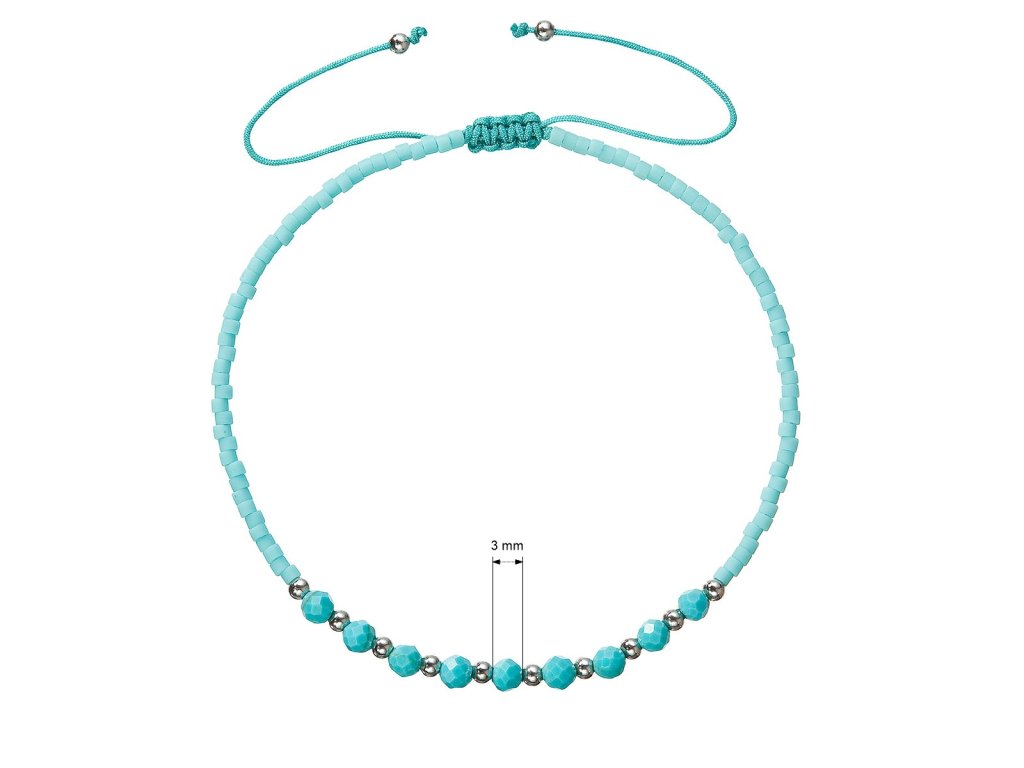 Je dozdobený korálkami zo striebra 925/1000. Dĺžka náramku sa reguluje posúvaním šnúrky v uzle a je maximálne 25 cm.